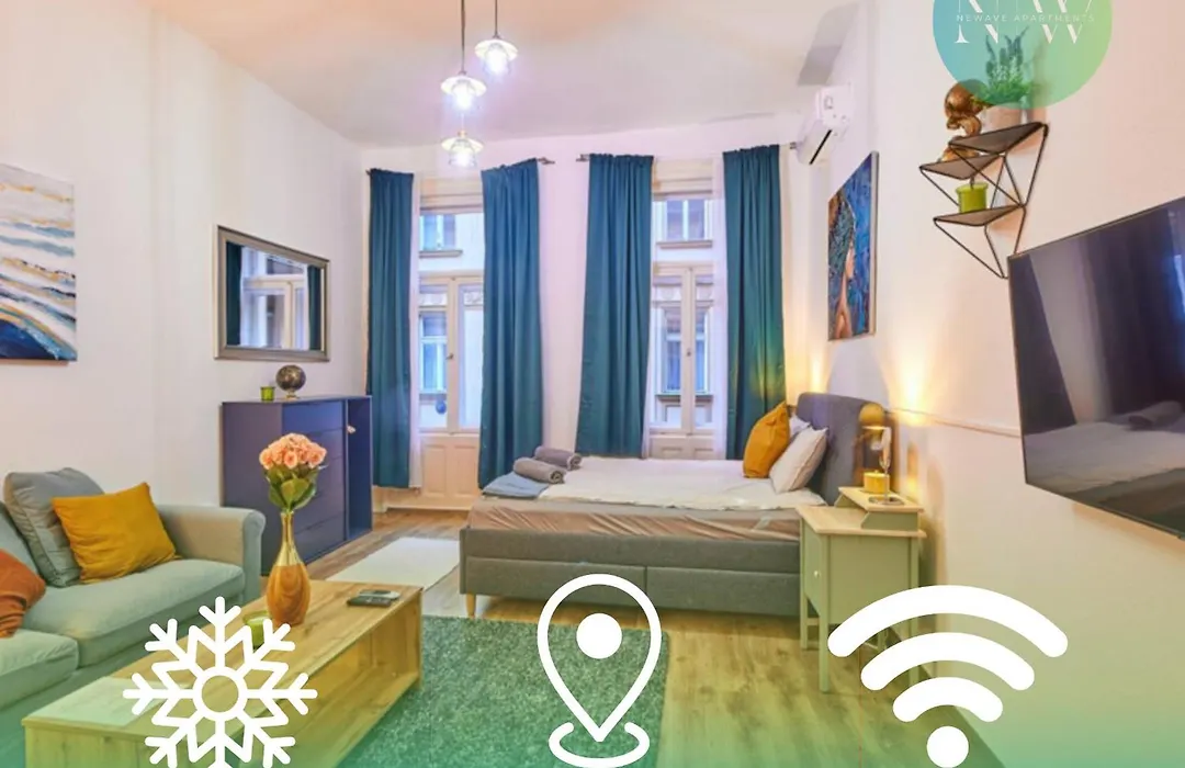 El Apartamento Uhu Flat W Ac By Nw Budapest, situado a unos 20 minutos a pie de la Casa del Terror, se encuentra a a 750 m de un importante lugar para familias como el Ojo de Sziget. Los huéspedes tienen acceso a Wi-Fi.